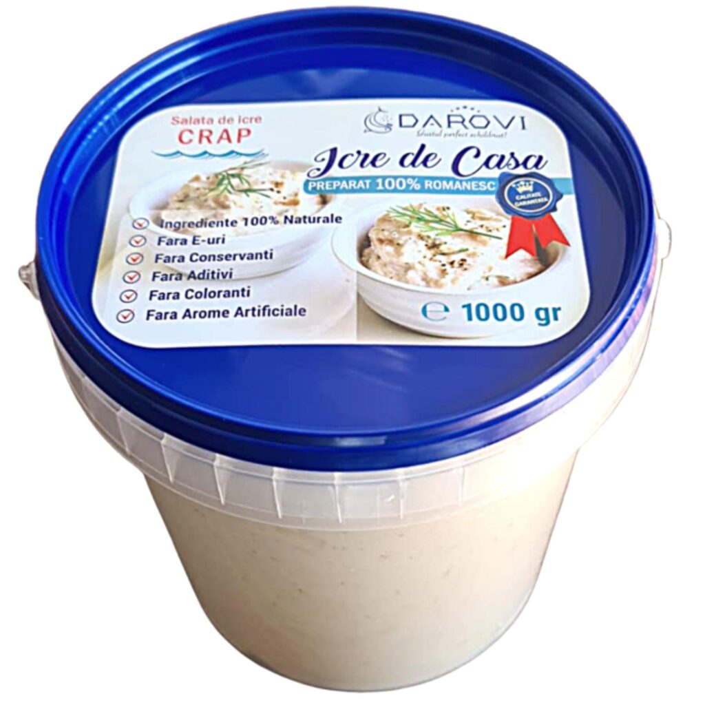 Ingrediente: icre sarate Crap 35%, ulei de floarea soarelui-High Oleic, ulei de masline, gris, ceapa, lamaie.